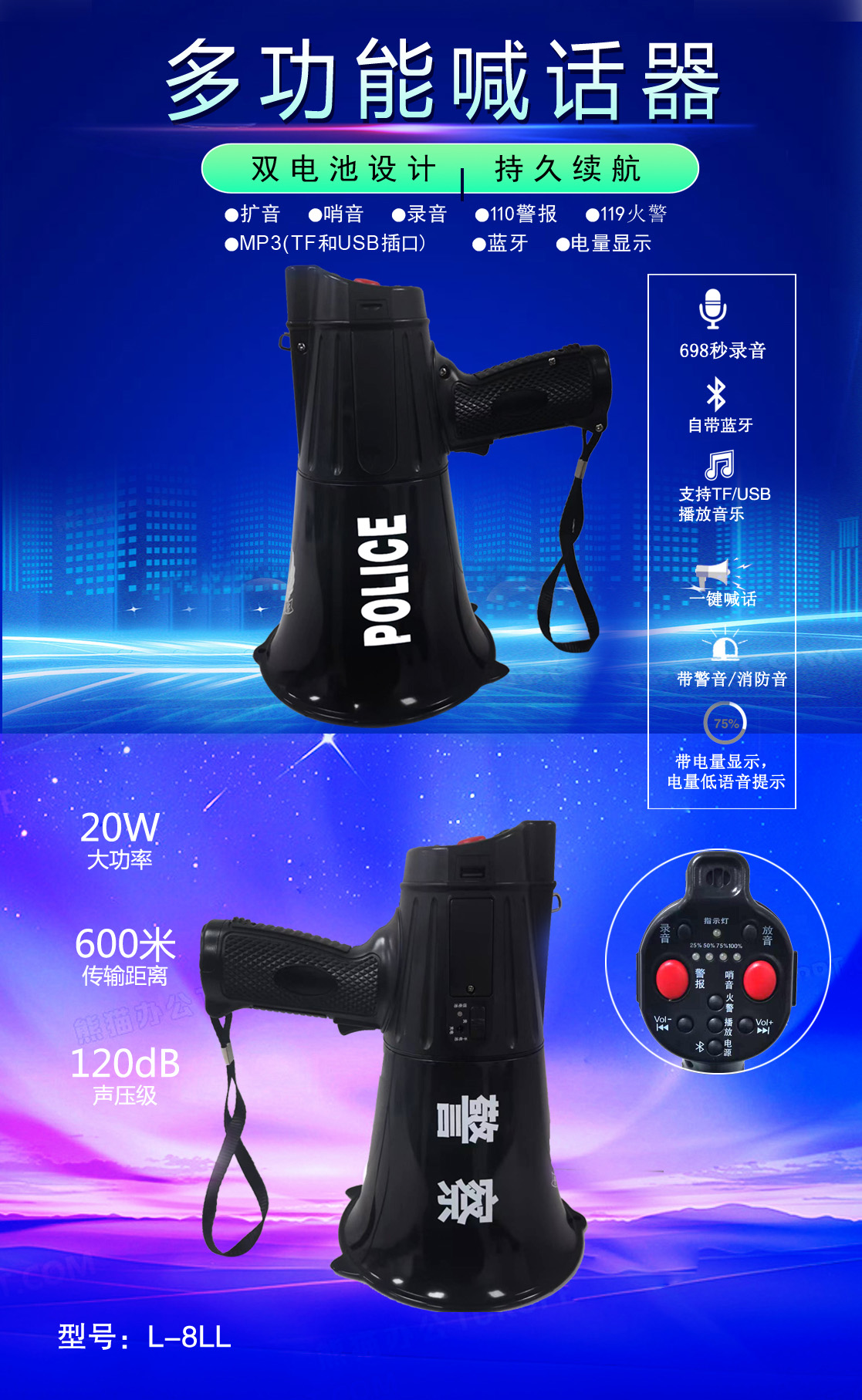 • 專業(yè)設(shè)計(jì),外觀獨(dú)特、新穎,操作簡(jiǎn)便的多功能喊話器