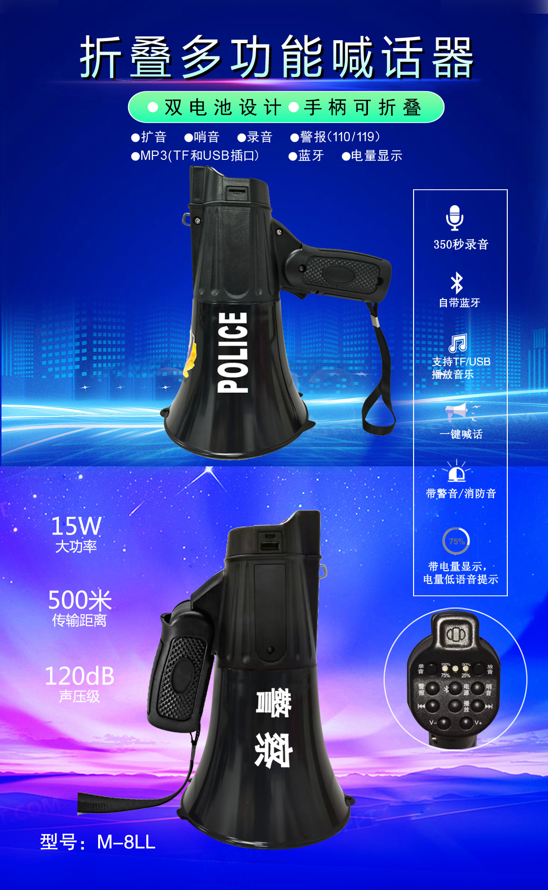 • 專業(yè)設(shè)計(jì),外觀獨(dú)特、新穎,操作簡便的多功能喊話器