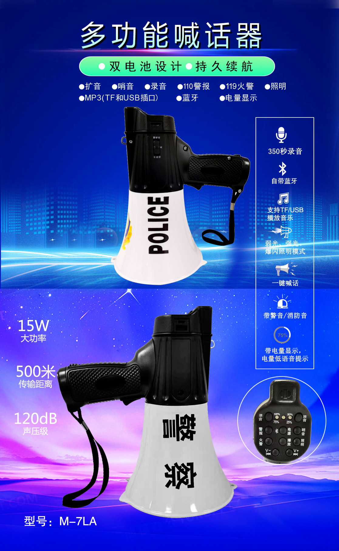 • 專業(yè)設(shè)計(jì),外觀獨(dú)特、新穎,操作簡便的多功能喊話器