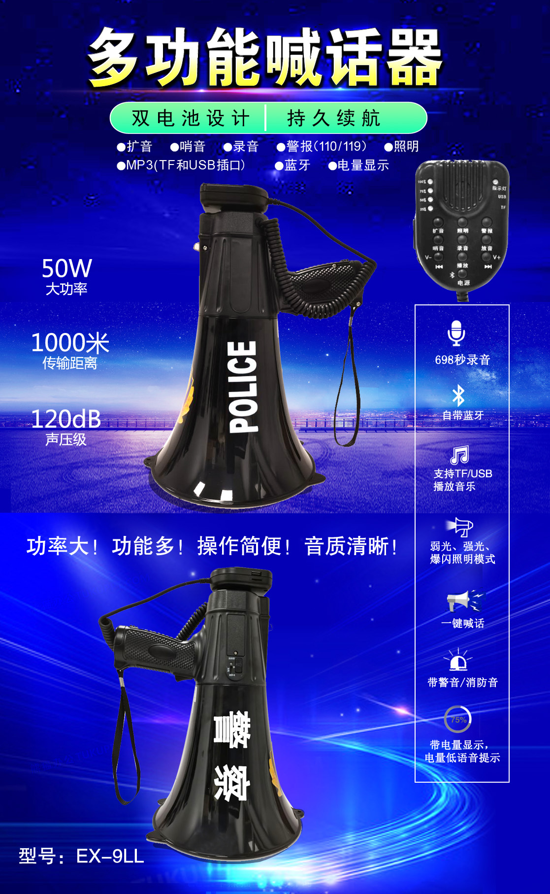 • 專(zhuān)業(yè)設(shè)計(jì),外觀獨(dú)特、新穎,操作簡(jiǎn)便的多功能喊話器